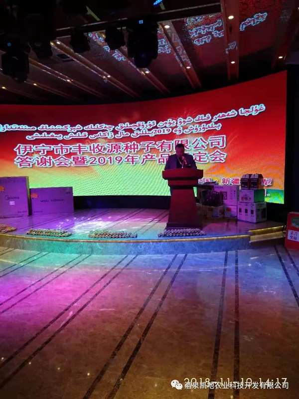 2018年11月10日,新疆伊犁伊寧市豐收源種業(yè)有限公司攜手甘肅酒玉種業(yè)有限公司2019年度玉米新品種推介會在新疆伊寧市突瑪麗斯大飯店舉辦。