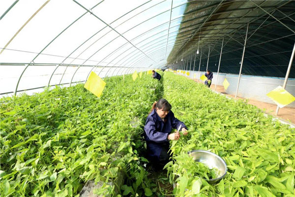 △在河北省隆堯縣大張莊村大棚內(nèi),一排排無(wú)土栽培的種植槽里,空心菜、蒜苗、芹菜、香菜等各類(lèi)蔬菜青翠芳香、長(zhǎng)勢(shì)喜人。