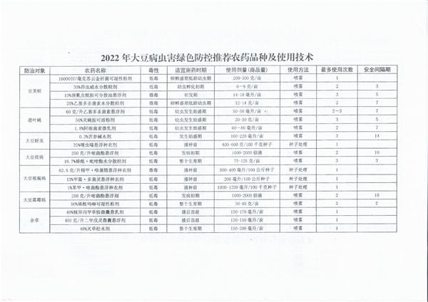 《2022年農(nóng)作物病蟲害綠色防控推薦農(nóng)藥品種及使用技術(shù)》的通知