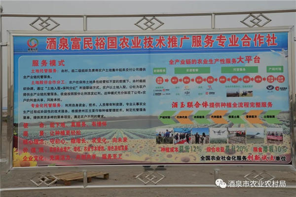 酒泉富民裕國農(nóng)業(yè)技術(shù)推廣服務(wù)專業(yè)合作社以黨建引領(lǐng)合作社發(fā)展,提出了“支部建在產(chǎn)業(yè)鏈上,能人聚在產(chǎn)業(yè)鏈上、黨員示范在產(chǎn)業(yè)鏈上”的發(fā)展思路,采取“黨支部+龍頭企業(yè)+農(nóng)民合作社+家庭農(nóng)場+種植大戶”的方式,開展農(nóng)業(yè)社會服務(wù),使黨的組織優(yōu)勢和產(chǎn)業(yè)發(fā)展優(yōu)勢相互支撐、互融共通,實現(xiàn)產(chǎn)業(yè)發(fā)展到哪里,黨的支部建設(shè)就跟到哪里,借助黨的組織建設(shè)推動農(nóng)民合作社規(guī);、產(chǎn)業(yè)化運營。目前,該合作社全程托管玉米制種標(biāo)準(zhǔn)化示范田2010畝,建立小麥智慧標(biāo)準(zhǔn)示范田230畝。半托管玉米制種田4.5萬畝,帶動托管、半托管服務(wù)大田玉米、向日葵、小麥等農(nóng)作物面積達(dá)10萬畝,輻射帶動全區(qū)小農(nóng)戶4000余戶。