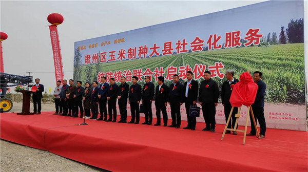 在全力保障糧食安全和推進種業(yè)強市的關(guān)鍵時期,5月12日,“肅州區(qū)玉米制種大縣社會化服務(wù)統(tǒng)防統(tǒng)治聯(lián)合社”在“酒泉富民裕國農(nóng)民專業(yè)合作社”舉行揭牌儀式。標志著酒泉市首個“社會化服務(wù)統(tǒng)防統(tǒng)治聯(lián)合社”正式成立。