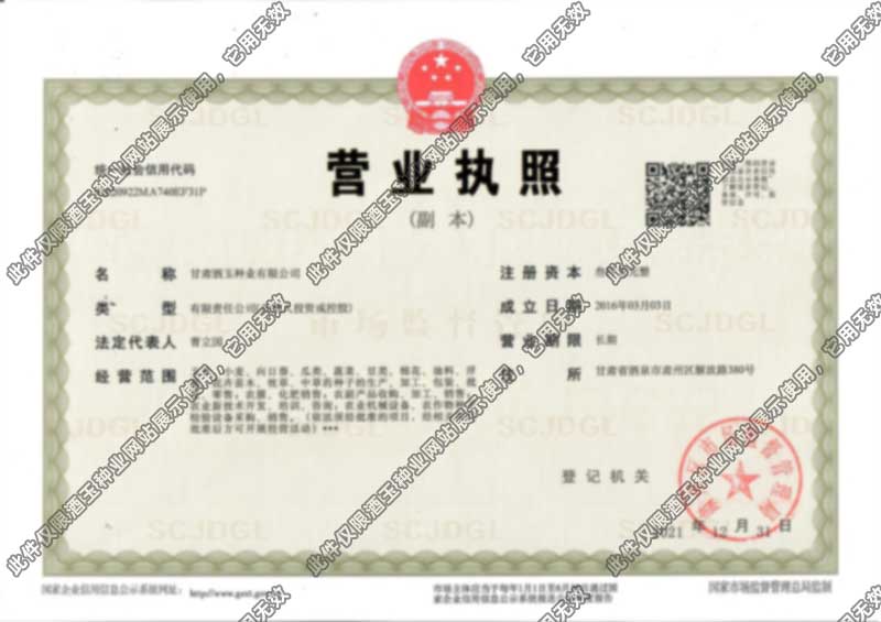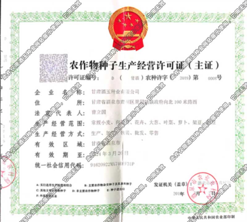 酒玉種業(yè)種子生產(chǎn)經(jīng)營許可..